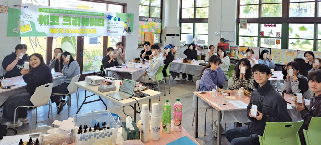 프로그램은 활동별로 1교시부터 3교시까지 준비됐다. 1교시는 ‘나’에 대해 좀 더 알아보는 시간으로 MBTI 검사를 통해 자신의 성향을 파악하고, 그에 맞춘 향수를 만들어보는 시간을 가졌다. 이어진 2교시에서는 학생들이 환경보호의 중요성을 깨달을 수 있도록 환경 교육과 함께 버려진 청바지를 재활용한 업사이클링 활동을 진행했다.