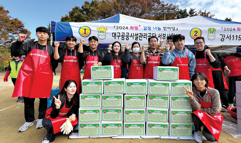 대구공공시설관리공단(이사장 문기봉) 서부사업소가 지난 9일(토) 달서구 학산공원 운동장에서 겨울철 취약계층에게 따뜻한 온기를 나누기 위한 김장 나눔 봉사를 실시했다.