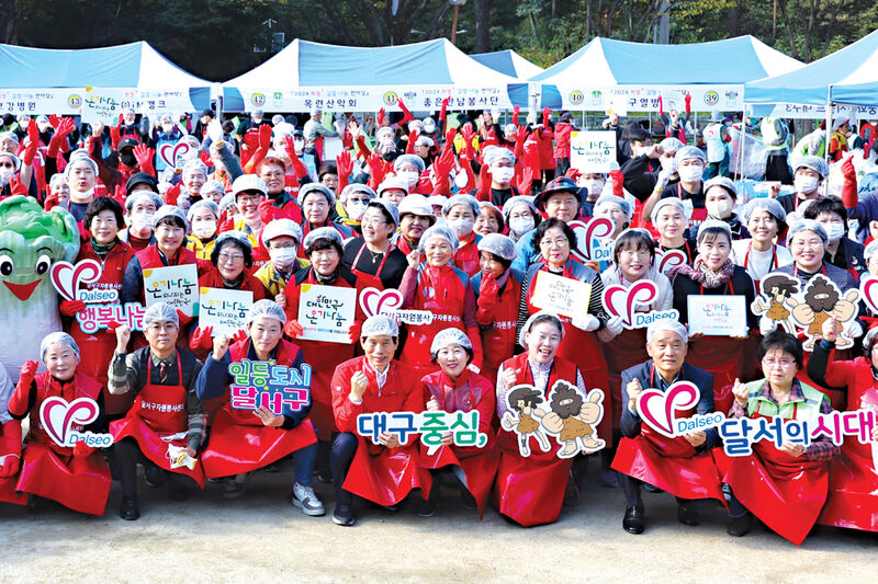달서구(구청장 이태훈)와 달서구자원봉사센터(센터장 권혁환)가 지난 9일(토) 오전학산공원 운동장에서 50개 단체, 650여 명이 참여한 ‘2024 희망죘 김장나눔 한마당’행사를 개최했다.