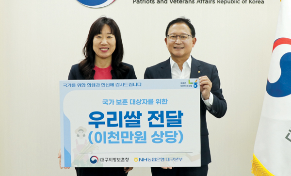 NH농협은행 대구본부(본부장 전경수)는 지난 6일(수) 따뜻한 겨울나기의 일환으로 지역내 취약계층 보훈가족들에게 전달될 후원품(쌀 20㎏ 400포)을 대구지방보훈청에 전달했다.