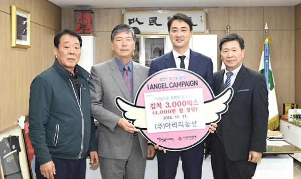 (주)아라리농산(회장 강종주)는 지난 11일(월) 김장김치 3,000박스(4,000만 원 상당)를 달성군에 기탁했다.