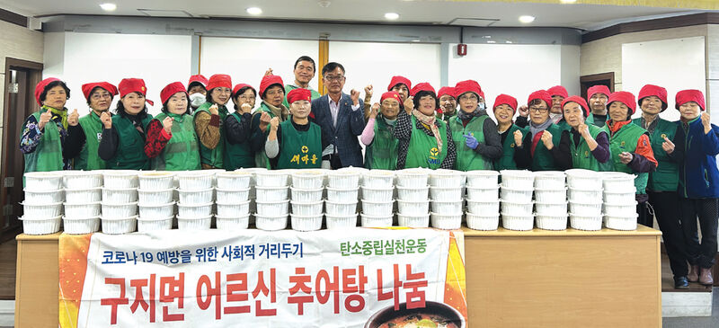 달성군 구지면 새마을부녀회(회장 이순분)는 지난 19일(화) 지역사회를 위한 따뜻한 나눔행사의 일환으로 300인분의 추어탕을 정성껏 준비해 관내 어르신과 어려운 이웃들에게 전달했다. 구지면 새마을 이순분 부녀회장은 “우리의 작은 정성이 힘든 분들께 따뜻한 위로가 되길 바란다”며 이웃사랑을 보였다. <자료제공:달성군청>