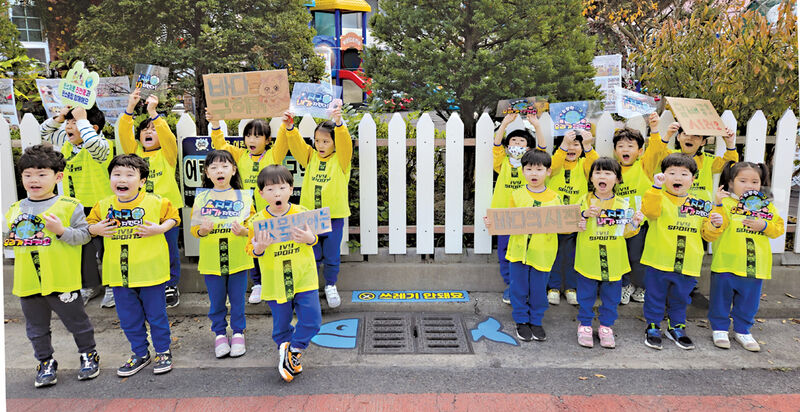 달서구 진천동(동장 류근현)이 지난 15일(금) 관내 어린이집 어린이들과 함께 바다로 가는 첫 관문인 도로변 빗물받이 주위에 고래그림과 ‘쓰레기 안돼요’ 문구 스티커를 붙이는 바다의 시작 캠페인을 전개했다. <자료제공:달서구청>