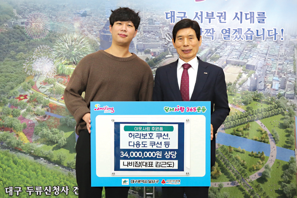 나비잠(대표 김근도)은 지난 19일(화) 허리보호 쿠션 및 다용도 쿠션 612점(34,000천원 상당)을 달서구에 전달했다.