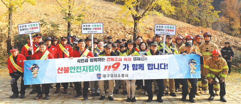 대구강서소방서는 지난 21일(목) 달성군 다사읍 이천리 소재 마천산 일원에서 가을철 산불 대비 유관기관 합동소방훈련과 예방 캠페인을 실시했다.