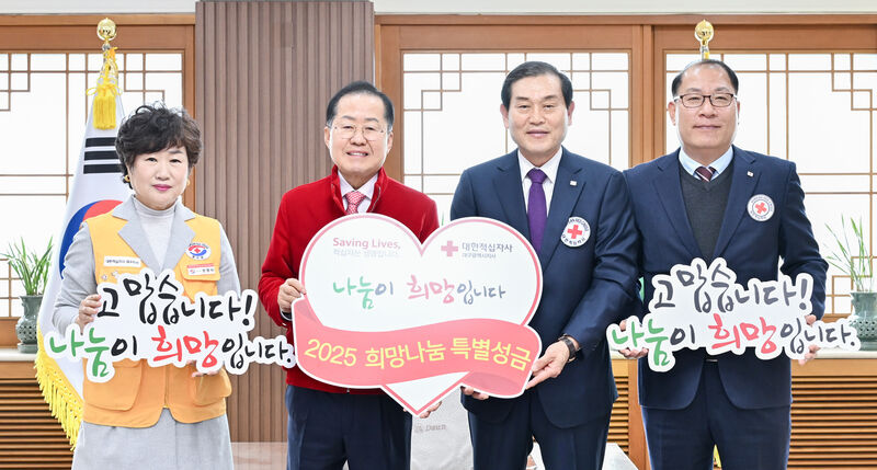 홍준표 대구광역시장은 12월 2일 오전 11시 대구시청 산격청사에서 박명수 대한적십자사 대구지사 회장과 한명아 적십자봉사회 대구시협의회장 등 관계자가 참석한 가운데 ‘2025년도 대한적십자사 대구지사 특별회비 1호 전달식’을 개최했다.