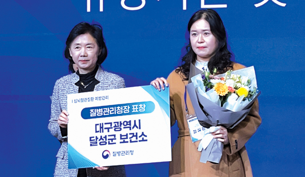 달성군보건소(군수 최재훈)는 지난달 28일(목) 서울 호텔나루 엠갤러리에서 개최된 2024년 만성질환 연구포럼에서 ‘질병관리청장’ 기관상을 수상했다. 만성질환 연구포럼은 질병관리청에서 주관한 행사로 ‘만성질환 예방관리를 위한 향후 정책·연구 발전방향 논의’를 주제로 개최됐다.