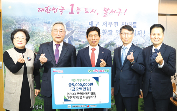 (사)SGI 무궁화복지월드 대구 제3방면 자원봉사단(단장 정재순)은 지난 2일(월) 연탄 6,000장(500만 원 상당)을 달서구에 기탁했다.