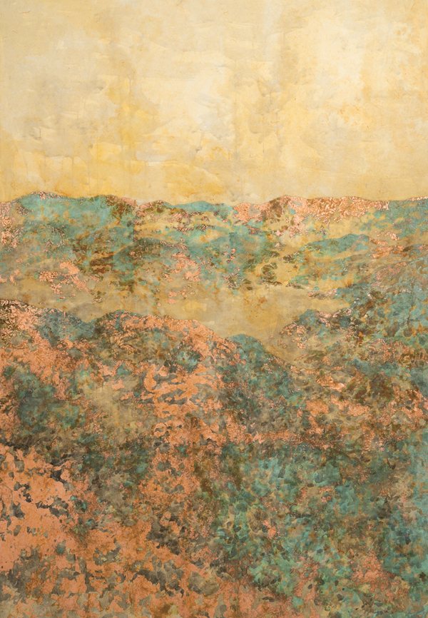 이번 전시에서 선보일 대형작품에는 산의 이미지를 표현하기 위해 부드럽고 유연한 질감의 닥종이에 동박을 붙이고, 종이를 구겨 독특한 질감을 표현했다.