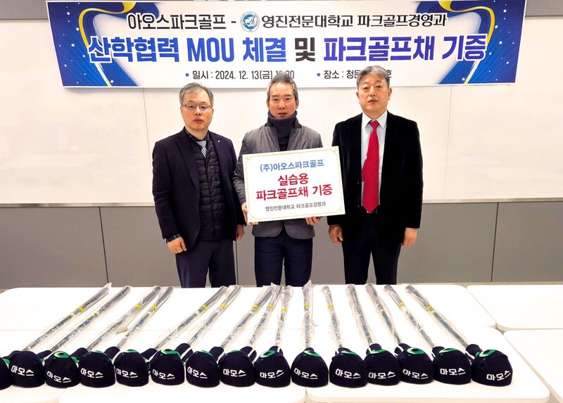 13일 아오스파크골프(대표 류훈)는 영진전문대학교 파크골프경영학과(학과장 조진석)와 업무협약을 체결하고 실습 기자재를 증정했다.