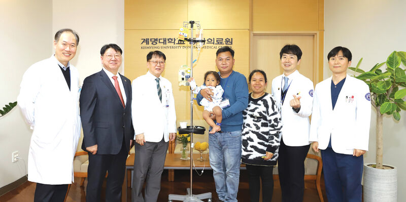 왼쪽부터 조광범 동산의료선교복지회장, 이길호 경상북도의사회장, 조치흠 동산의료원장, 환아와 환아부모, 류영욱 동산병원장, 비뇨의학과 하지용 교수계명대학교 동산의료원(의료원장 조치흠)이 개원 125주년을 맞아 캄보디아 환아에게 무료 수술을 지원하며 희망을 선물했다. 수술 지원을 받게 된 환아는 2023년 11월에 출생한 툰 티파데이싸리붓다(THOURN THIPADEISARIPUTA)로, 선천성 요도하열로 인해 일상에 어려움을 겪고 있었다. 수술은 비뇨의학과 하지용 교수의 주도로 12월 12일(목)에 진행됐다.