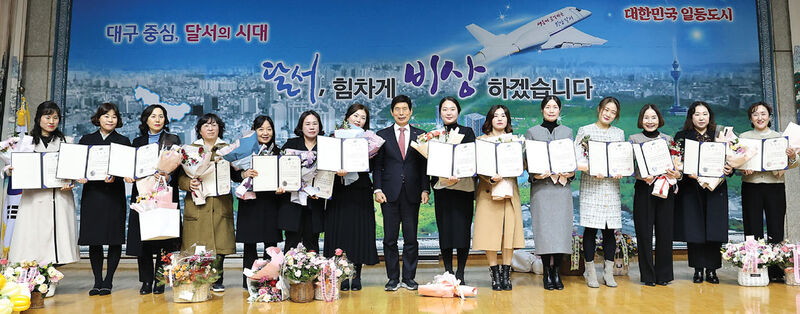 달서구(구청장 이태훈)가 지난 13일(금) 구청 대강당에서 지역 내 어린이집 모범 교직원 30명을 표창하고, 송년모임을 개최해 현장의 노고를 격려했다. 이번 행사는 한 해 동안 헌신해 온 보육교직원들의 노고를 격려하고, 교직원 간의 유대감을 강화하기 위해 마련됐다.