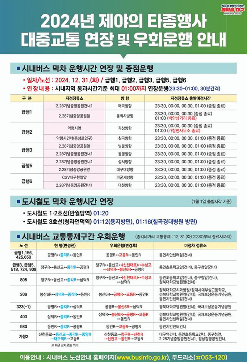 2024년 제야의 타종행사 대중교통 연장 및 우회운행 안내 [제공=대구시]