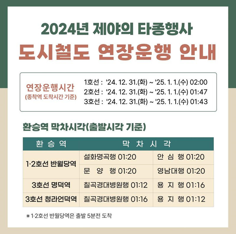 2024년 제야의 타종행사 도시철도 연장운행 안내 [제공=대구시]