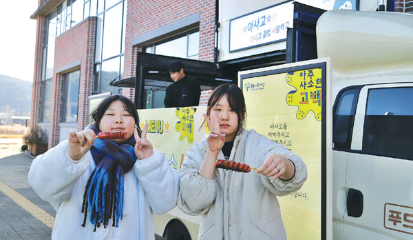 이번 아사고DAY에는 푸른나무재단에서 협찬한 푸드트럭이 학교에 깜짝 방문해 현장에서 츄러스를 나눠주었다. 또한 아사고 지도교사인 심규성 씨가 아사고 학생들과 함께 소세지를 구워 학생들에게 추가로 전달했다.