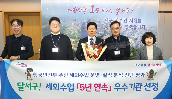 달서구는 행정안전부가 전국 243개 지방자치단체를 대상으로 실시한 2024년 세외수입 운영·실적 분석 진단 평가에서 우수 기관으로 선정되며, 전국 최초로 5년 연속(최우수 3회, 우수 2회)수상의 영예를 안았다. <자료제공:달서구청>