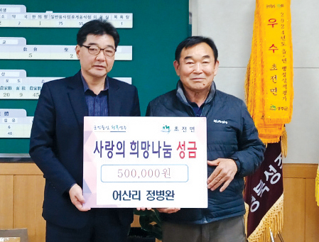 초전면 어산리 정병완 씨, 성금 50만 원 기탁
