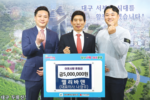 엘리바덴(대표이사 나광무)은 지난 6일(월) 관내 어려운 이웃을 위한 성금 500만 원을 달서구에 기탁했다.