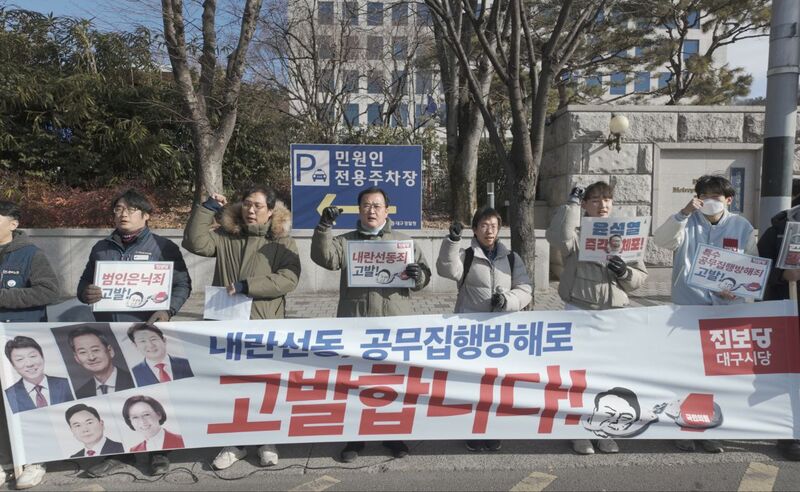 진보당은 “한남동 관저를 방문한 국민의힘 국회의원들은 앞장서서 내란 수괴를 지키겠다고 선언하고 공수처의 체포영장을 부정하며, 실제로 관저 앞에 머물며 영장 집행을 막고자 했다”며 “이는 내란을 옹호·선동하고 적법한 공무집행을 방해하며, 더 나아가 범인 윤석열을 숨겨주는 데 동조하는 아주 중대한 범죄 행위”라고 강조했다.