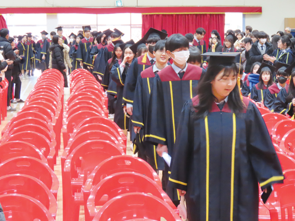 이번 졸업식은 졸업생 모두 졸업 가운을 입고, 학교장이 개별로 졸업장을 수여하며 학생들을 축하했다.
