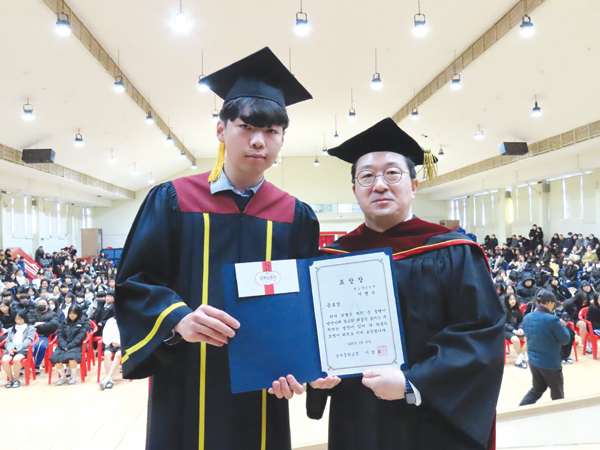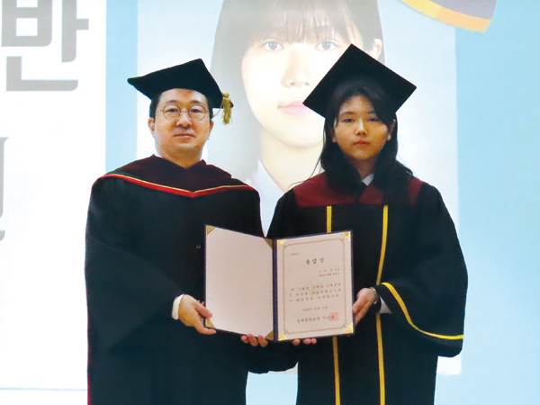 졸업생 대표 이현수·정지원 학생은 “상서중학교에서 함께 했던 3년이 너무 행복했다. 행복한 추억들을 소중히 간직하겠다.”라며 소감을 밝혔다. <자료제공:상서중학교>