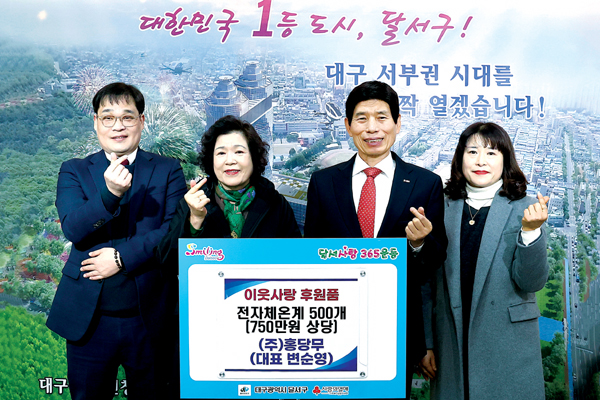 ㈜홍당무(대표 변순영)는 지난 10일(금) 관내 취약계층을 위한 전자체온계 500개(750만 원 상당)를 달서구에 기탁했다.