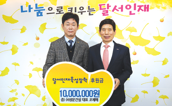 ㈜성운건설(대표 조제해)은 지난 9일(목) 지역 인재육성을 위해 1,000만 원의 후원금을 (재)달서인재육성장학재단에 전달했다.
