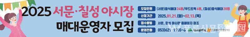 대구시와 대구전통시장진흥재단은 20일 2025년 한 해 동안 서문·칠성야시장에서 식품을 판매할 매대 운영자를 공개모집한다고 밝혔다.