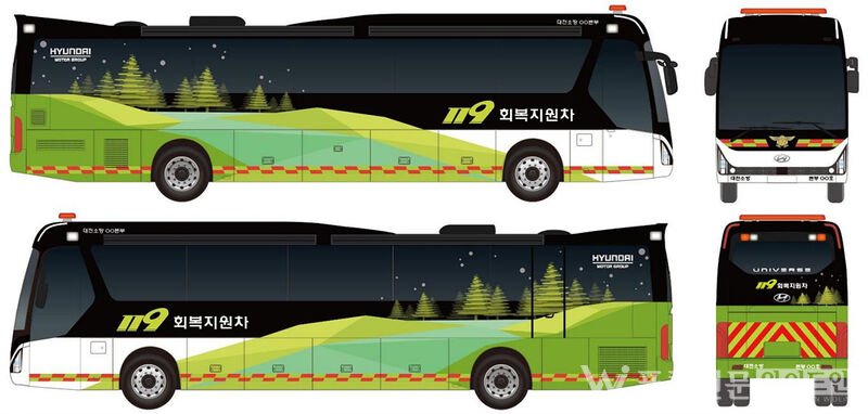 ‘119회복지원차’는 화재 진압, 구조·수색 활동 등 장시간 재난 대응이 필요한 현장에서 대원들에게 휴식과 회복을 지원하는 이동식 지원 차량으로 특히 폭염·한파와 같은 극한 환경에서 대원들의 체온 유지와 피로 회복을 돕는 역할을 하며, 재난 발생 시 현장 지휘관의 판단에 따라 즉각 투입된다.