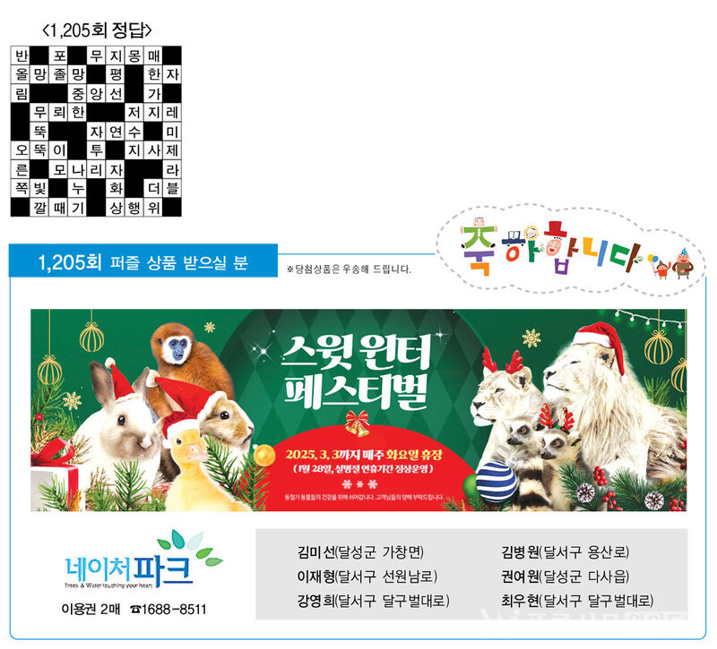 ♣ ‘가족과 함께 풀어보세요’정답을 아시는 분은 본사 편집부로 보내주시기 바랍니다. 2월 18일(화)까지 도착된 엽서 중에서 추첨을 통해 상품을 드립니다. 주소를 정확히 기재해 주십시오. 당첨상품을 우송해 드립니다.