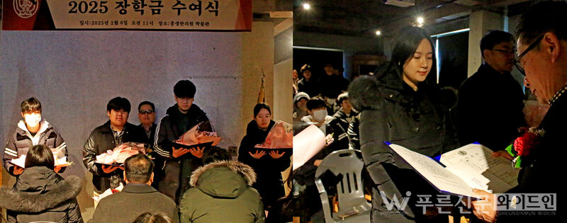 장학생들이 장학금을 수여하고 있다. [사진=이원선 기자]