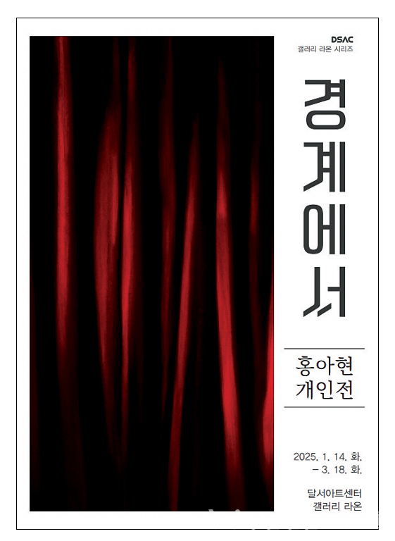 올해 첫 전시로 진행되고 있는 홍아현(대구대) 작가의 작품은 3월 18일(화)까지 선보이며, 관람 시간은 월~금요일 오전 10시~오후 8시, 토요일 오전 10시~오후 6시(일요일, 공휴일 휴관)까지 달서아트센터 본관 입구 갤러리 라온에서 선보인다.