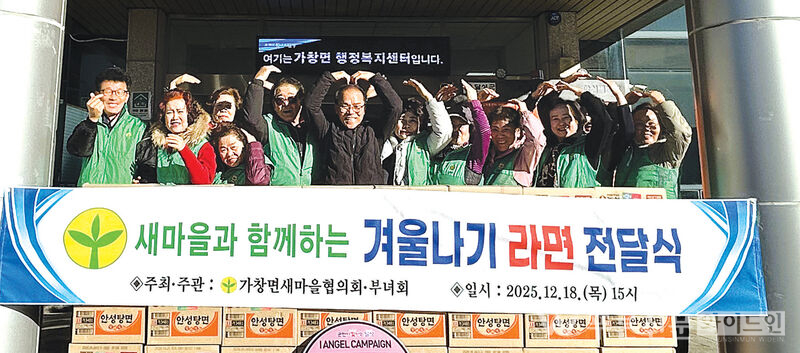 달성군 가창면 새마을협의회와 부녀회가 관내 취약계층을 위해 100만 원 상당 라면 32박스를 가창면 행정복지센터에 기탁했다.