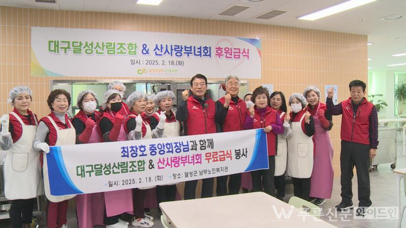 대구달성산림조합 산사랑부녀회는 지난 18일 대구달성산림조합과 함께 달성군 남부노인복지관에서 500여 명의 어르신을 대상으로 무료급식 봉사를 진행했다.