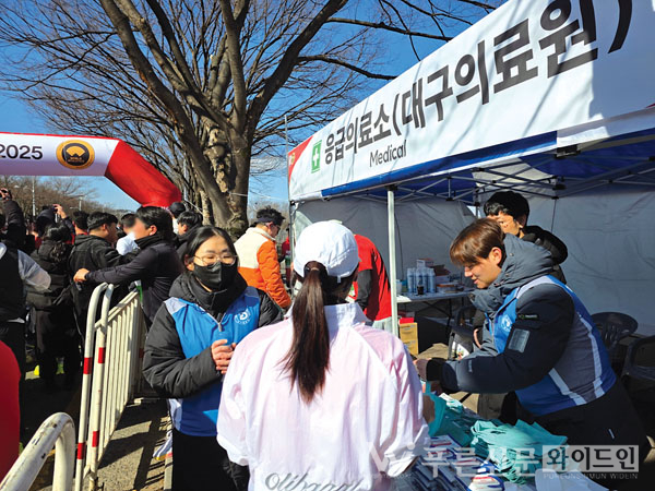 대구의료원(원장 김시오)은 지난 23일(일) ‘2025 대구마라톤대회’가 열린 대구스타디움에 응급의료소를 설치하고 참가 선수들과 시민들을 대상으로 의료지원 활동을 펼쳤다. 김시오 대구의료원장은 “앞으로도 활발한 의료지원 활동을 통해 안전한 행사를 돕고 대구 시민들이 안심하고 대회를 즐길 수 있도록 노력하겠다”고 말했다.
