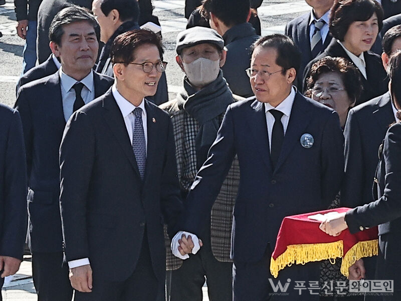 두 사람은 이날 2.28민주운동기념탑 참배와 기념식 일정을 함께 소화해 관심을 모았다.