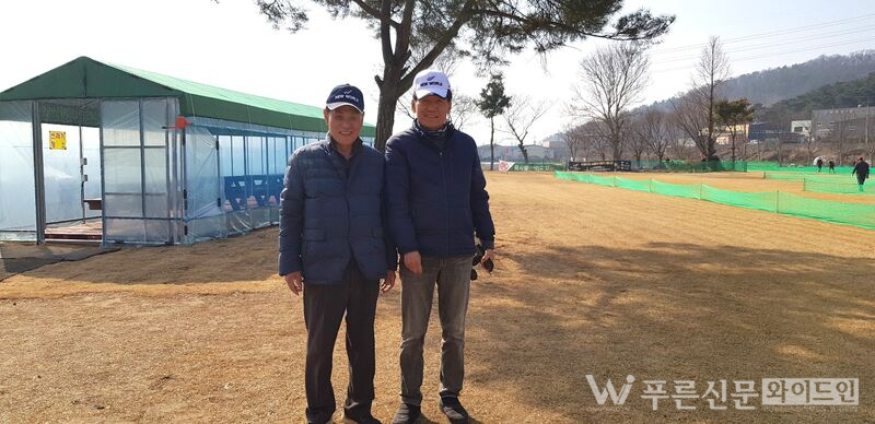 ▲뉴월드파크골프 윤동희 회장(왼쪽)과 신준경 시설이사. 〔사진=김영조 기자〕