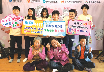 성주군은 치매보듬마을 어르신과 치매극복 선도학교 수륜초등학교 학생들과 사회적가족만들기 프로젝트 행사를 지난달 29일 수륜면 수성1리 보듬마을에서 가졌다.