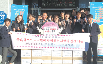 구지중학교는 지난달 29일(금) 학생 25명, 학부모 7명, 교직원 20명 약 50여 명이 참여해 학생들이 학교 텃밭에서 직접 재배한 무와 배추로 김장을 담그고 김장 김치를 구지면 독거노인 가정에 전달하는 나눔 행사를 실시해 지역사회 사랑 나눔을 실천했다.