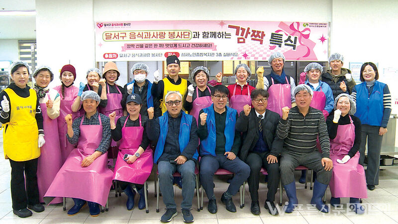 달서구 음식과사랑 봉사단이 어려운 경제 상황 속에서도 매월 셋째 주 화요일마다 어르신들에게 무료 급식을 제공하며, 따뜻한 나눔을 실천하고 있다.