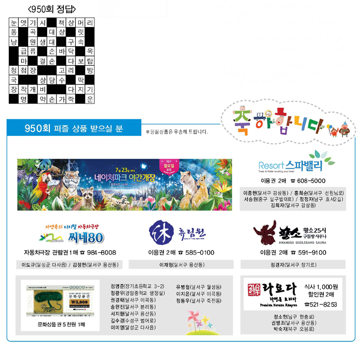 ◑ ‘가족과 함께 풀어보세요’ 낱말퍼즐을 만들어 푸른신문으로 보내주세요. 채택된 분께는 작은 선물을 우송해 드립니다.