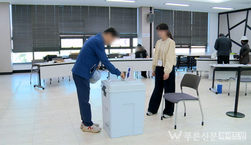 재보궐 선거가 한창인 가운데 남부교육청에 마련된 투표소에서 유권자가 투표에 참여고 있다. [쵤영=이세경기자]