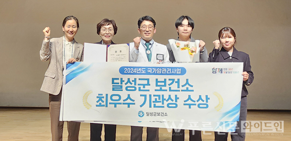 달성군보건소는 2023년도 우수기관 수상에 이어 올해 ‘최우수 기관상’을 수상하며 국가 암 검진 수검률을 높이기 위한 그간의 노력을 인정받았다.