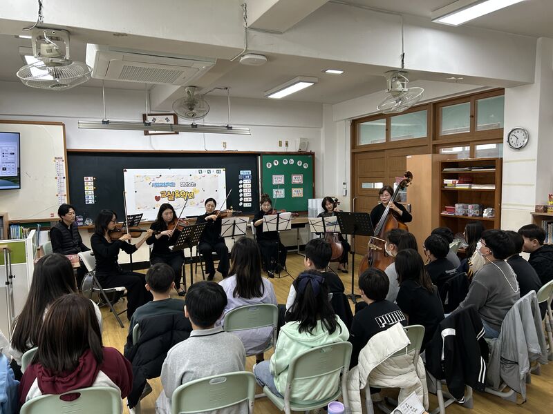 대구진월초등학교(교장 이미숙)는 지난달 28일(금) 5~6학년 교실에서 대구시립예술단이 주최하고 대구시립교향악단이 주관한 ‘2025 교실음악회’ 공연을 개최했다.