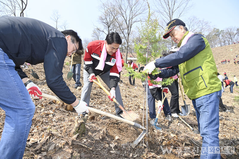 2025년 04월 4일_달성군, 식목일 기념 나무 심기 행사 [자료제공= 달성군청]사업이 마무리되는 5월에 문양리 산 32번지 소나무 숲이 편백나무 숲으로 탈바꿈한다. 편백나무는 생명력과 장수의 상징으로, 병충해에 강하고 내공 해성이 뛰어나 재선충 대체 수종으로 적합하다는 평가를 받고 있다. 또한, 피톤치드 함량이 높아 공기 정화와 미세먼지 저감 효과가 우수하고, 특유의 향은 심신 안정을 도와 스트레스 감소와 우울증 완화에 효과적이라 알려져 있다.