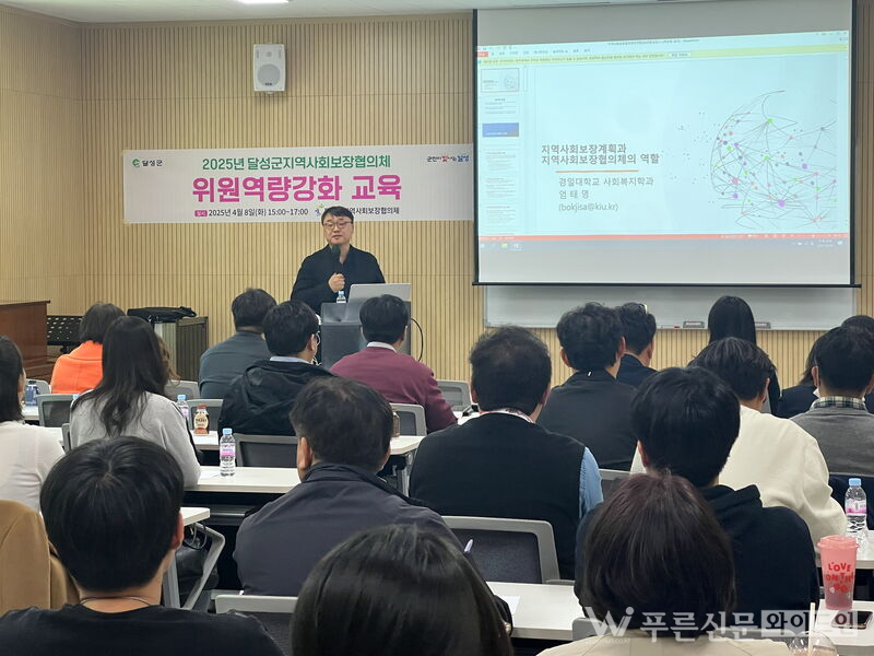지역사회보장협의체 위원 역량 강화 교육 실시 [자료제공= 달성군청]대구 달성군은 지난 8일 2025년 지역사회보장협의체(이하 협의체) 위원 역량 강화 교육을 달성군 가족센터에서 실시했다고 밝혔다.