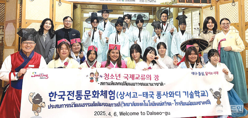 달서구는 지난 6일(일) 병암서원에서 달서구 상서고와 태국 친선결연학교인 퐁사와디 기술학교 학생들을 대상으로 ‘글로벌 청소년 한국전통문화체험’ 행사를 진행했다.