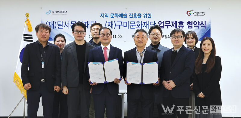 (재)달서문화재단(이사장 이태훈)은 지난 8일(화) (재)구미문화재단(이사장 김장호)과 지역 문화예술 진흥을 위한 업무협약(MOU)을 체결했다.