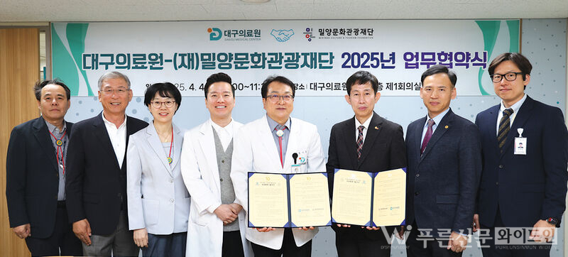 협약식에는 김시오 대구의료원장, 서창민 대구의료원 진료처장, 신상헌 대구의료원 행정처장, 이병희 대구의료원 감사실장과 이치우 밀양문화관광재단 이사장, 송호림 밀양문화관광재단 경영기획팀장, 이준욱 밀양문화관광재단 교육전시팀장 및 관계자 10여 명이 참석했다.