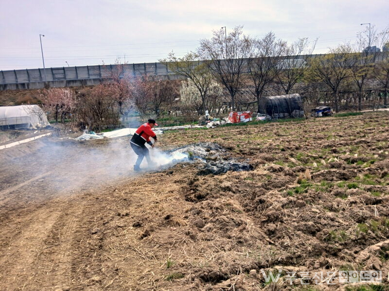 지난 3월, 영농 부산물 소각 현장 단속 사진 [자료제공= 달성군청]